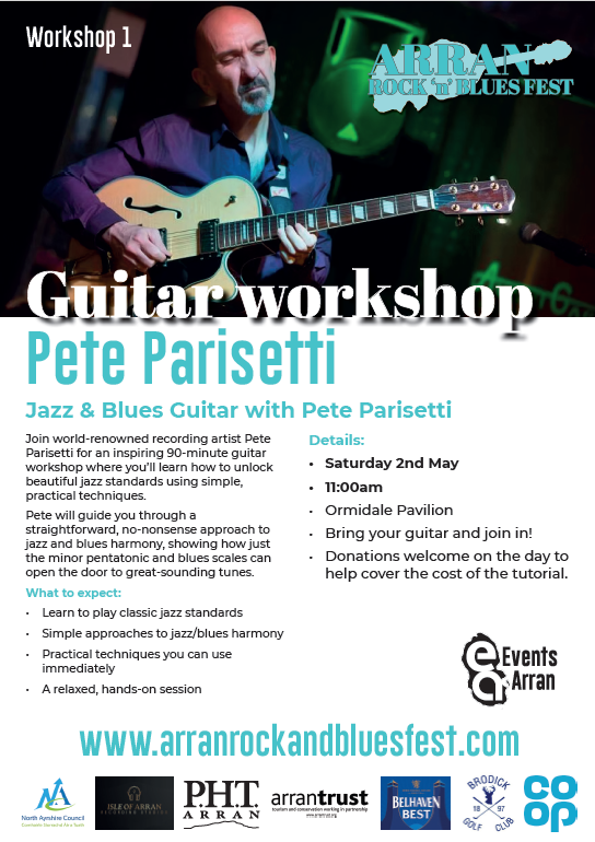 Guitar Workshop No.1 on Saturday 2nd May with Pete Parisetti from 11am in the Ormidale pavilion.